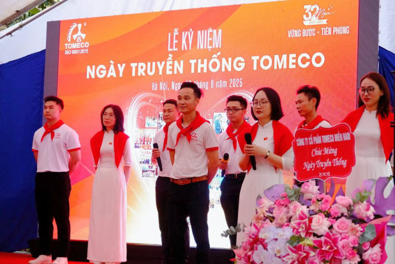 The celebration was held in a warm yet solemn atmosphere, gathering the Board of Directors, employees across the system, and honored guests. It was a time for the TOMECO family to reflect on 32 years of dedication, to pay tribute to loyal employees and outstanding teams, to recognize the winners of the online contest “The Vitality of TOMECO,” and to come together in the stirring melodies of TOMECO March and TOMECO Youth.