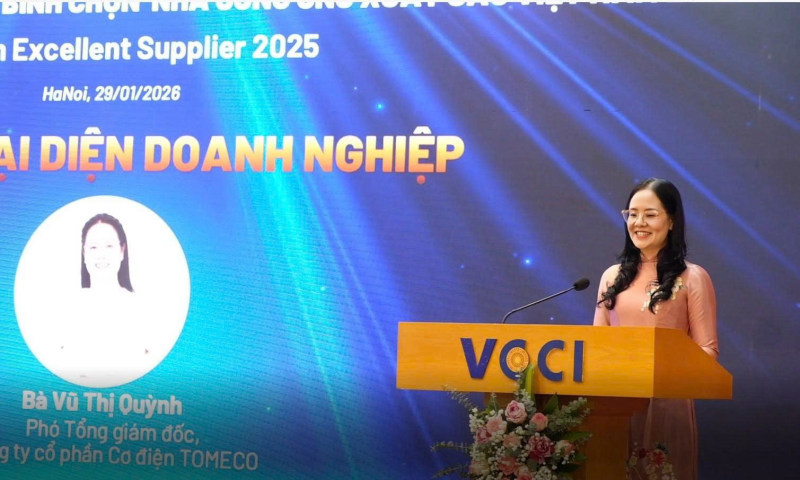 Chiều 29/01/2026, tại Hà Nội, Công ty Cổ phần Cơ điện TOMECO trang trọng đón nhận danh hiệu “Nhà cung ứng xuất sắc Việt Nam 2025” do Liên đoàn Thương mại và Công nghiệp Việt Nam (VCCI) trao tặng tại diễn đàn “Nhà cung ứng Việt Nam – Hành trình vươn tới sự xuất sắc”. Đây là chương trình bình chọn quy mô toàn quốc, ghi nhận những doanh nghiệp sản xuất – cung ứng tiêu biểu, có năng lực tham gia sâu vào chuỗi giá trị toàn cầu.